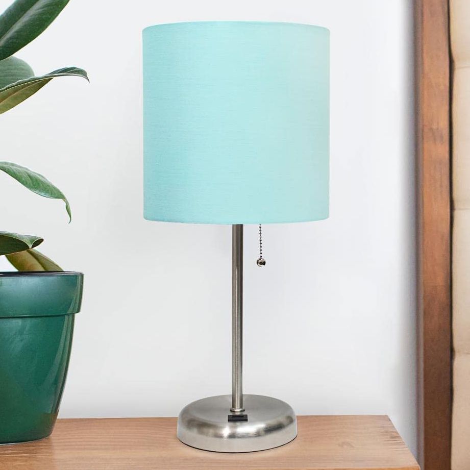 Oslo 19 1/2" High Steel USB Table Desk Lamp with Aqua Shade