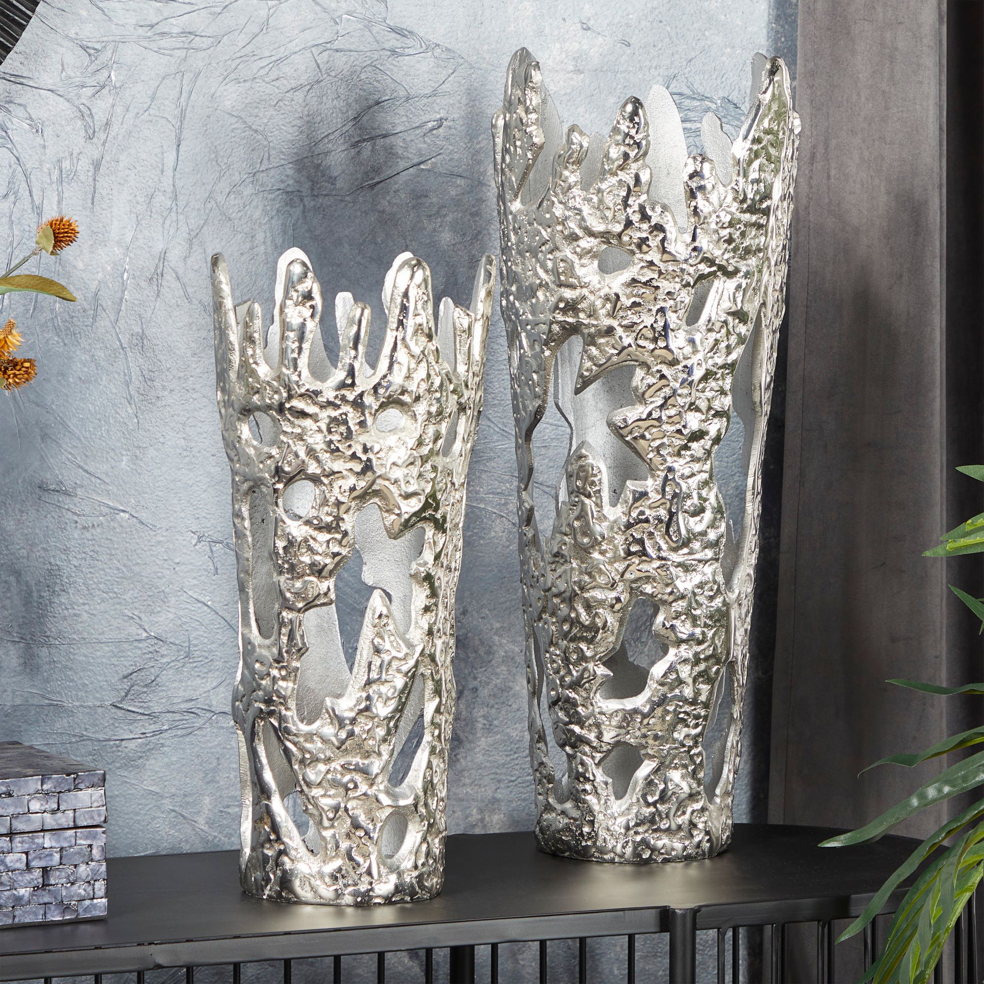 Finlay 20" High Silver Metal Decorative Vases Set of 2