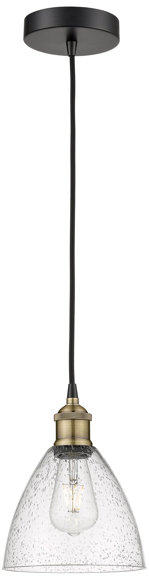 Edison Dome 7.5"W Black Brass Corded Mini Pendant w/ Seedy Shade