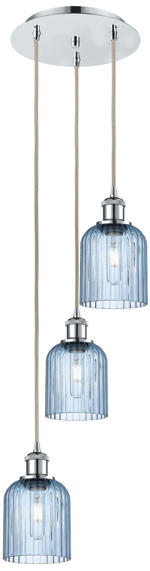Ballston Bridal Veil 3 Light 12" Cord Hung Multi Pendant Chrome/Blue Shade
