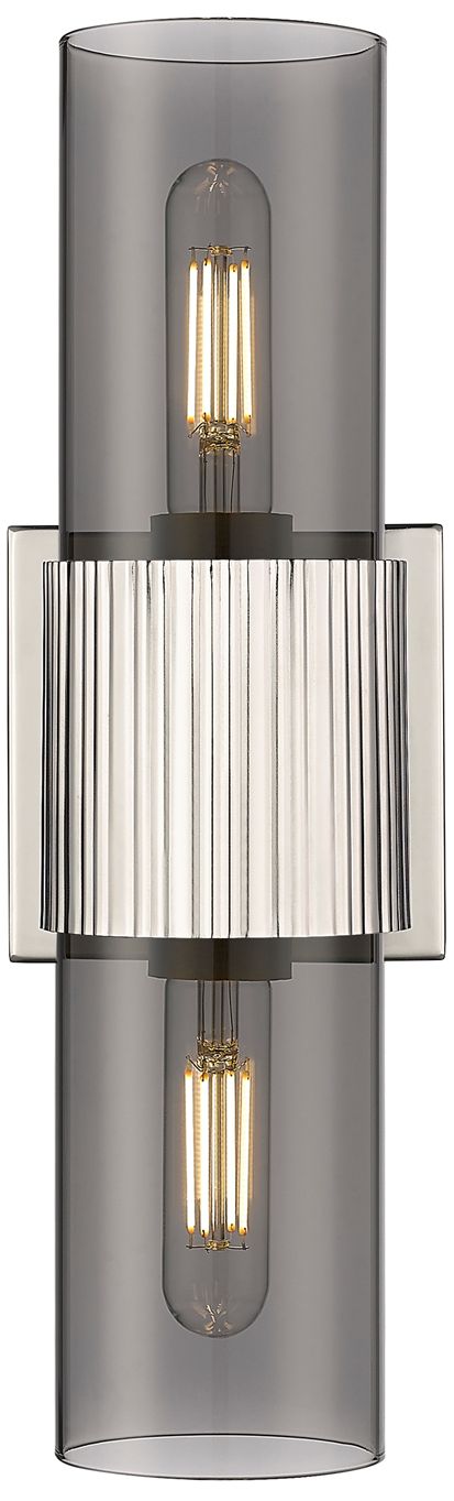 Bolivar 4" Wide 2 Light Polished Nickel Bath Light With Plated Smoke S