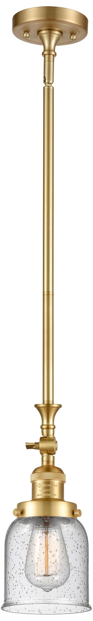 Bell 5" Wide Satin Gold Stem Hung Tiltable Mini Pendant w/ Seedy Shade