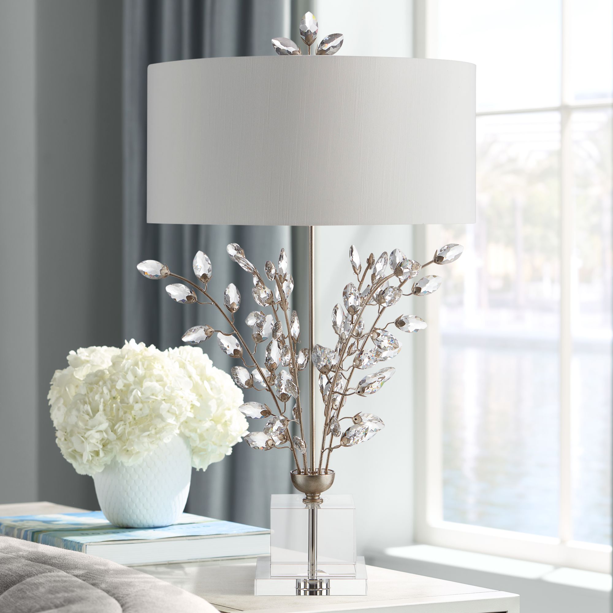 Currey and Company Forget-Me-Not 33 3/4" Silver Leaf and Crystal Lamp