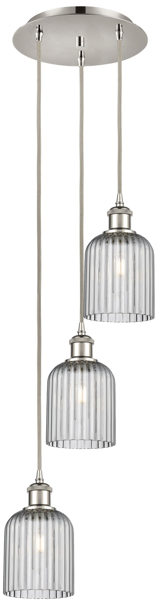 Ballston Bridal Veil 3 Light 12" Cord Hung Multi Pendant Nickel/Smoke Shade