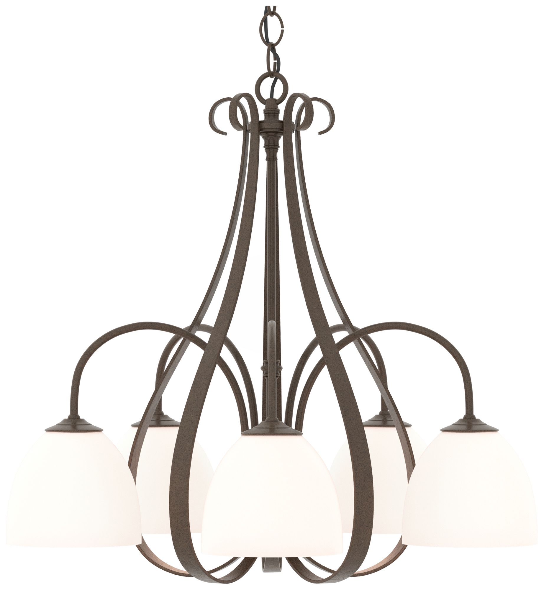 Sweeping Taper 24" Wide 5 Arm Bronze Chandelier With Opal Glass