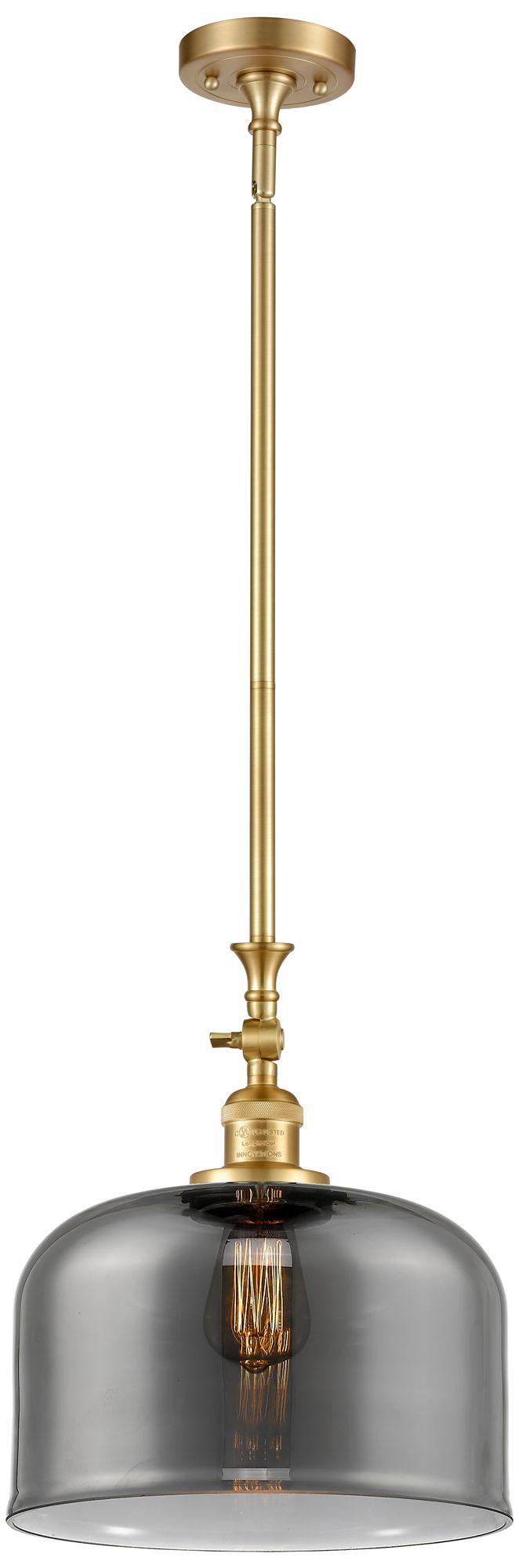 Bell 12" Satin Gold Stem Hung Mini Pendant w/ Plated Smoke Shade