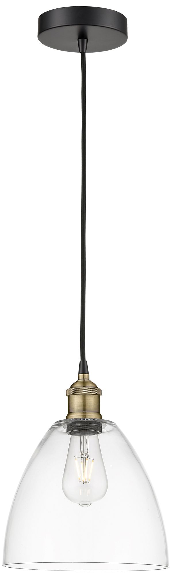 Edison Dome 9" Wide Black Brass Corded Mini Pendant w/ Clear Shade