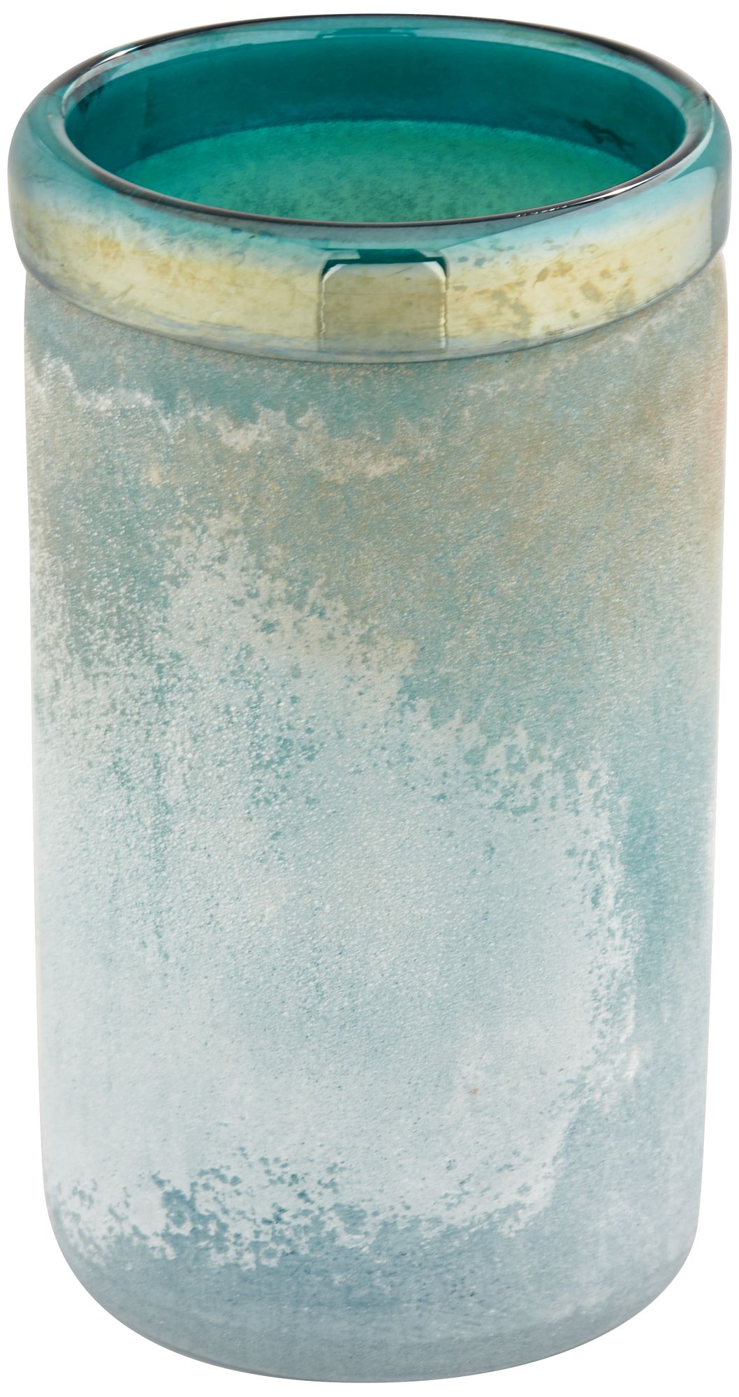 Multi-Tone Blue 9 1/2" High Cylinder Glass Decorative Vase
