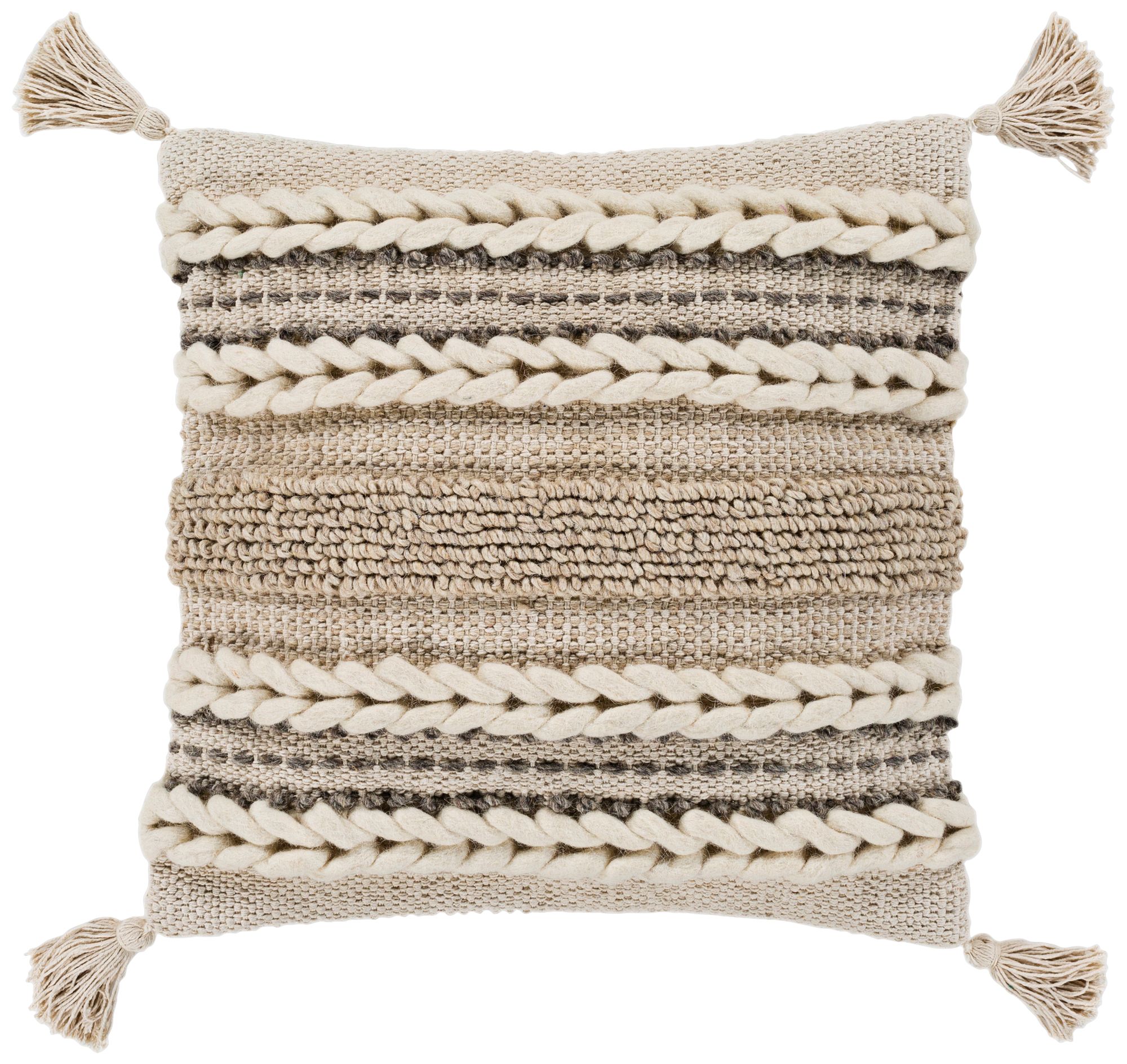 Surya Tov Beige Khaki Braided 30" Square Decorative Pillow