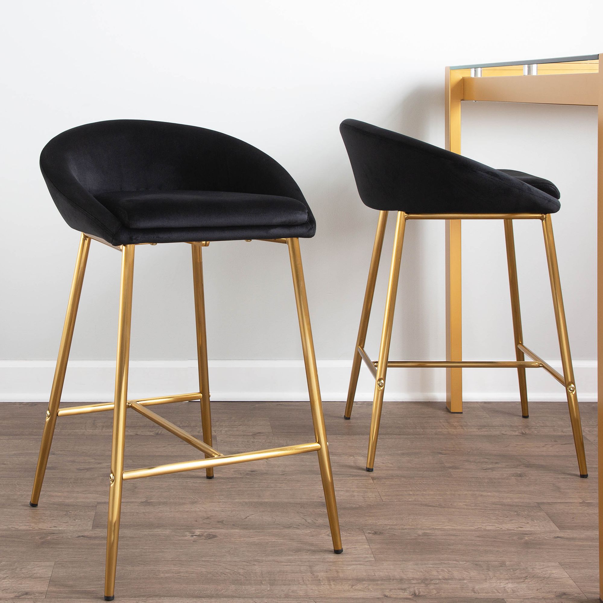 Matisse 25 3/4" Black Velvet Counter Stools Set of 2