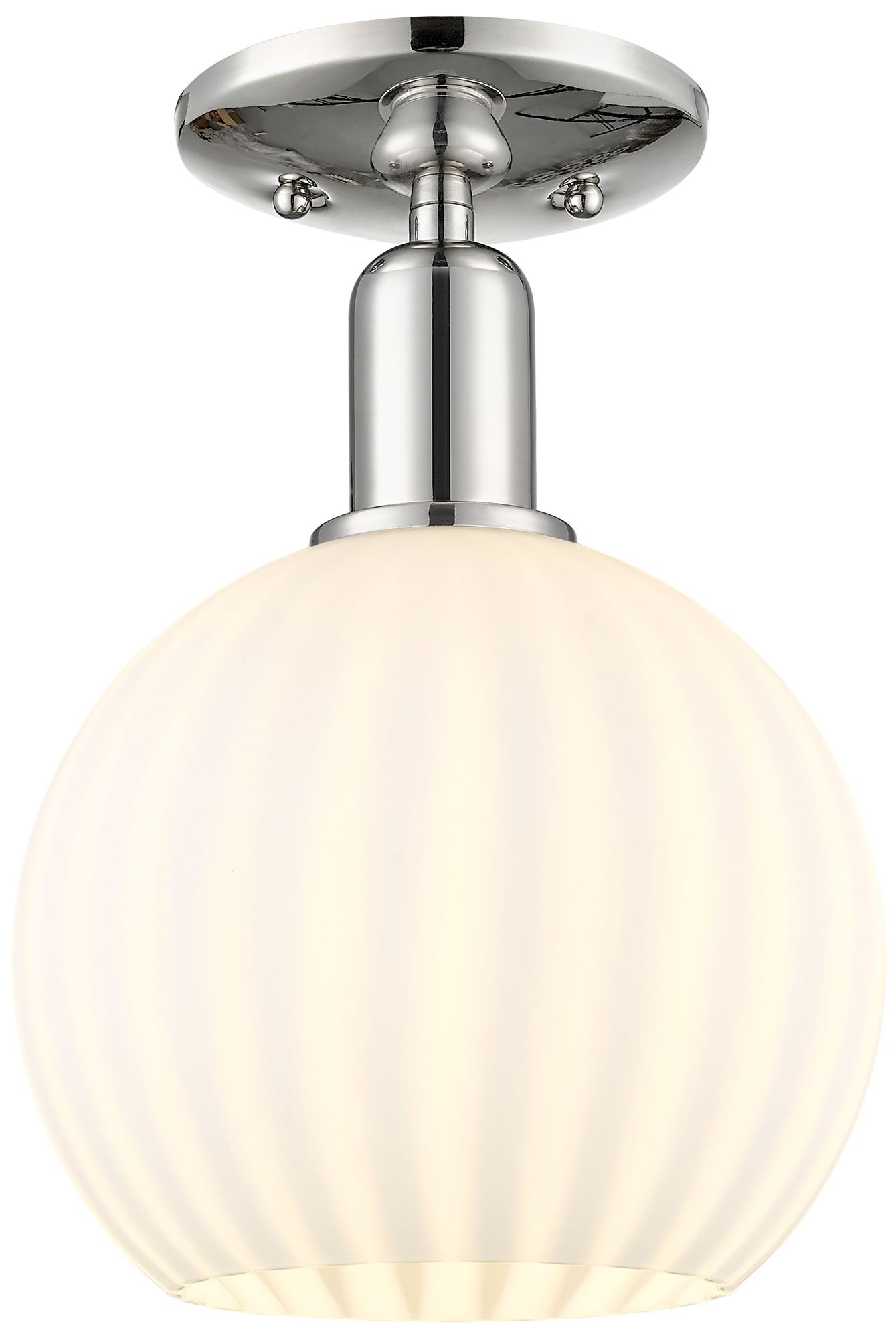 Arcadia White Venetian 8" Wide Polished Nickel Semi.Flush Mount With