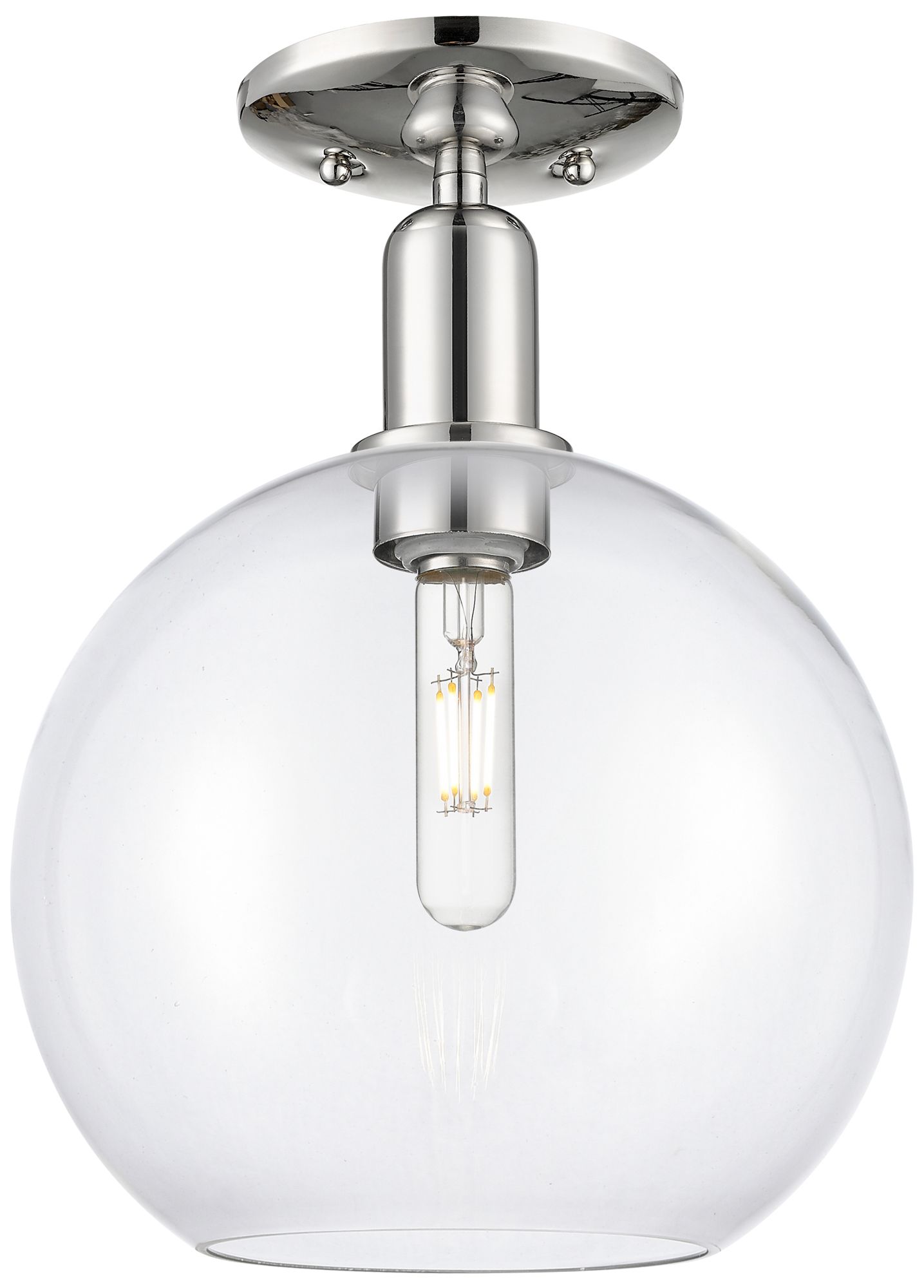 Arcadia Athens 10"W Polished Nickel Semi.Flush Mount With Clear Shade