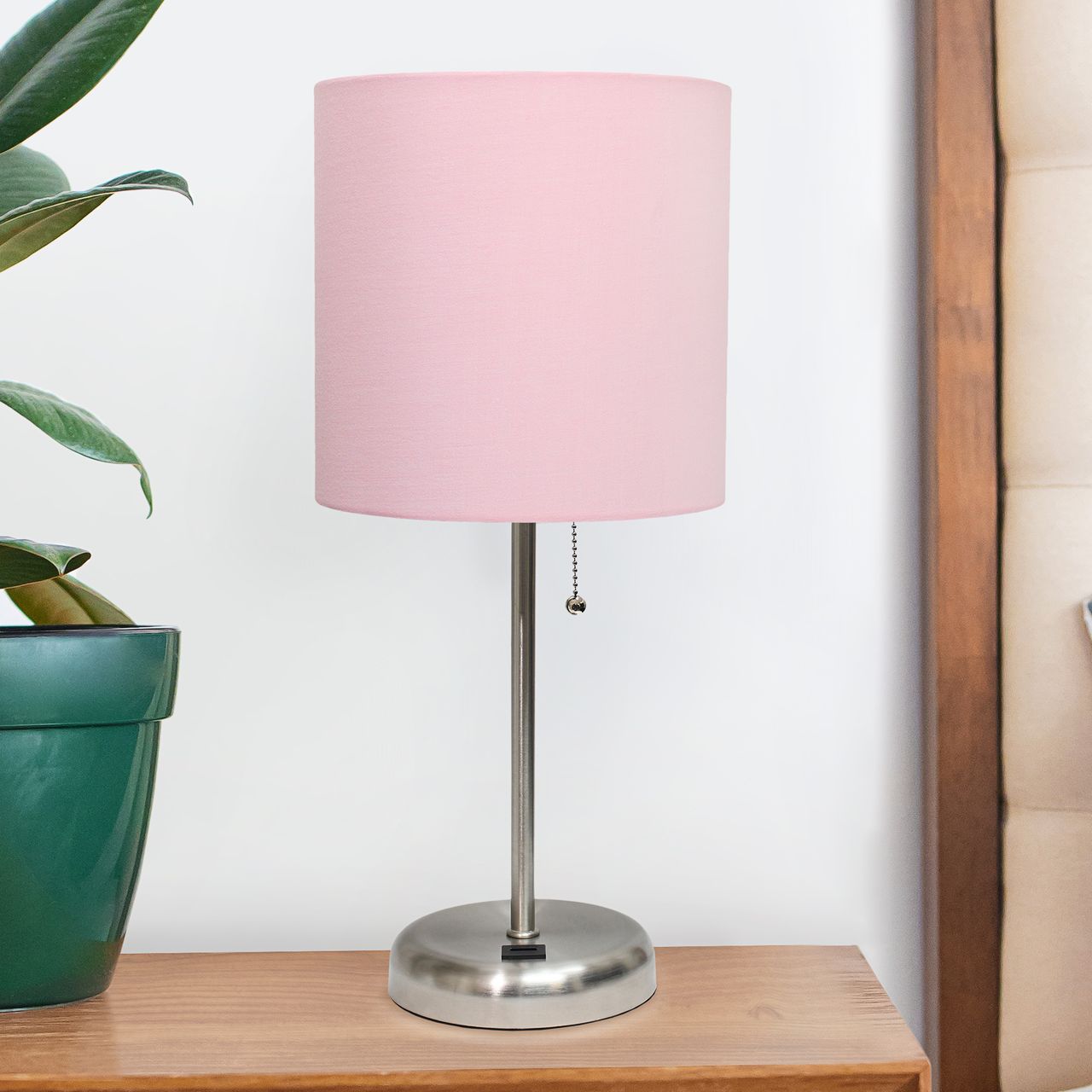 Oslo 19 1/2"H Steel USB Table Desk Lamp w/ Light Pink Shade
