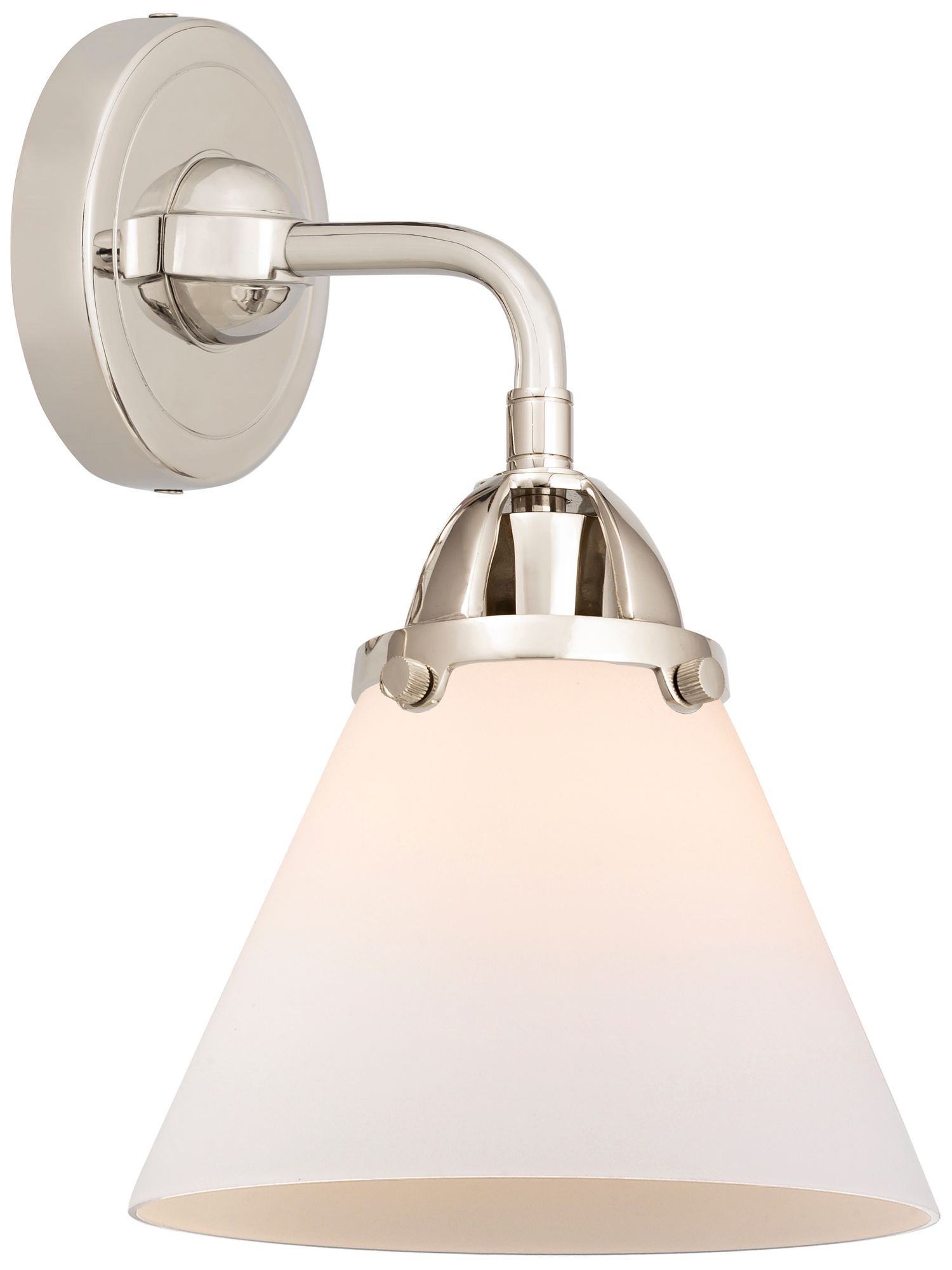 Nouveau 2 Cone 8" Incandescent Sconce - Nickel Finish - Matte White Sh
