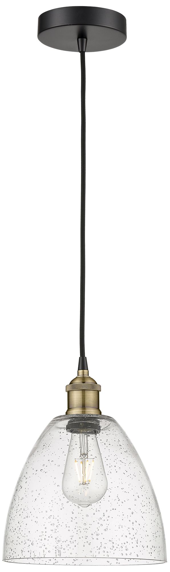 Edison Dome 9" Wide Black Brass Corded Mini Pendant w/ Seedy Shade