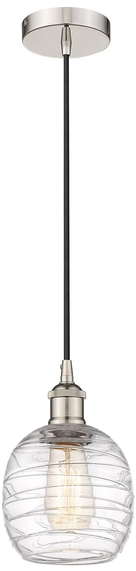 Edison Belfast 6" Polished Nickel Corded Mini Pendant w/ Deco Swirl Sh