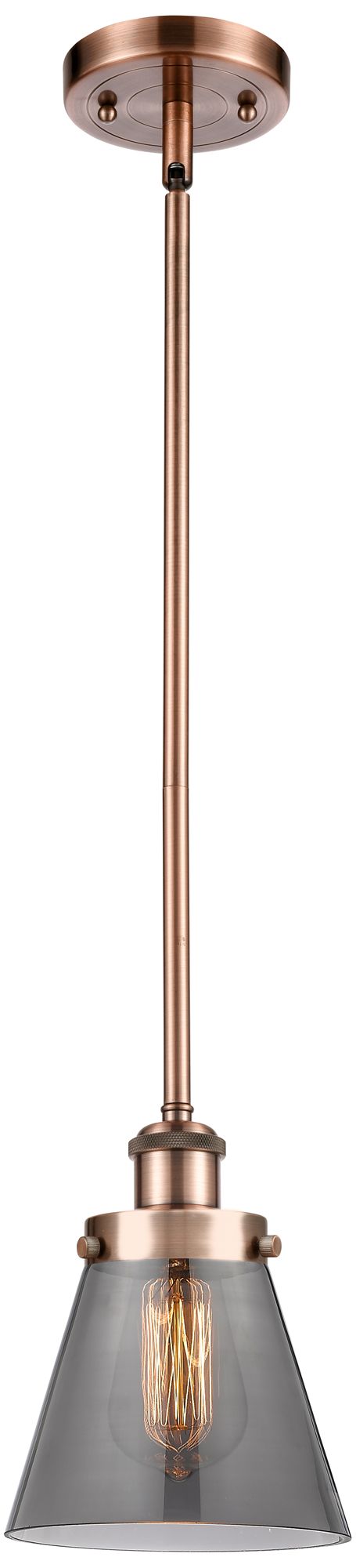 Ballston Urban Cone 6" Antique Copper Stemmed Mini Pendant w/ Smoke Sh