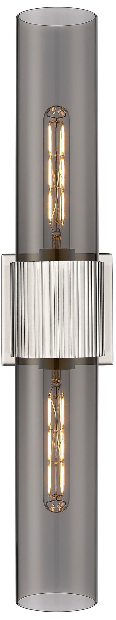 Bolivar 4" Wide 2 Light Satin Nickel Bath Light With Plated Smoke Shad