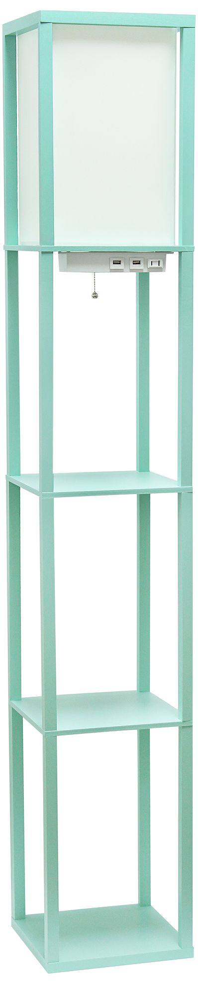 Simple Designs 62 1/2" Aqua Blue Shelf Floor Lamp with USBs and Outlet