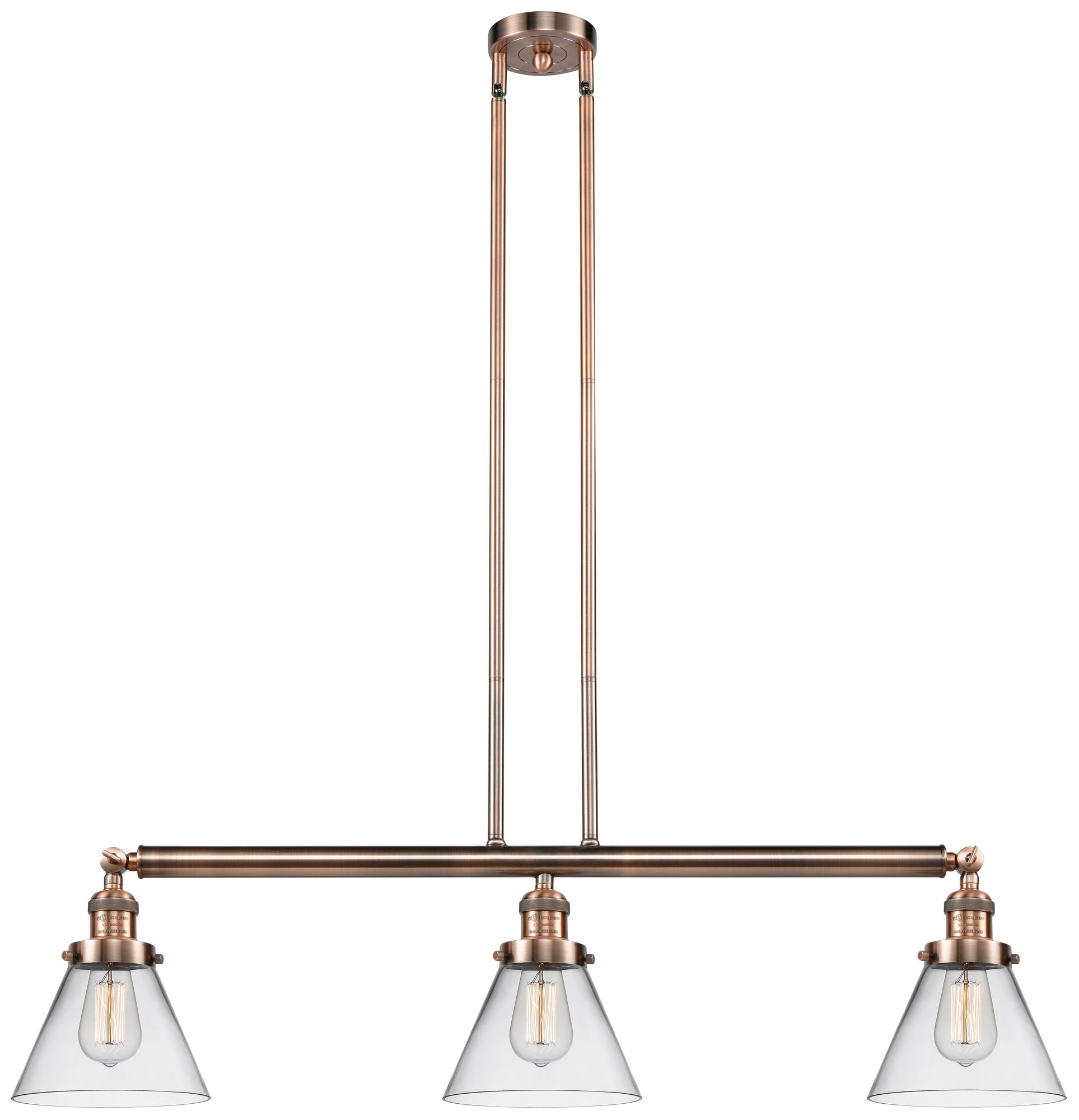 Cone 40.25" Wide 3 Light Copper Stem Hung Island Light w/ Clear Shade