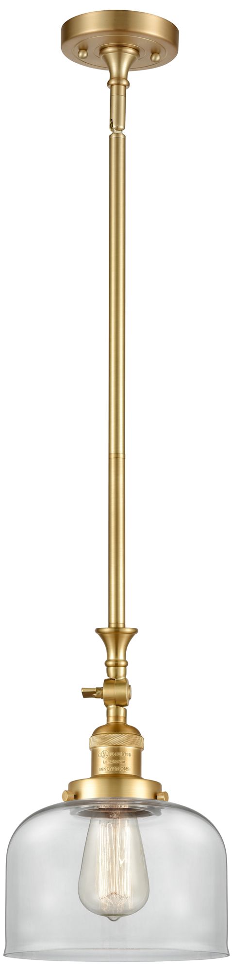 Bell 8" Wide Satin Gold Stem Hung Tiltable Mini Pendant w/ Clear Shade