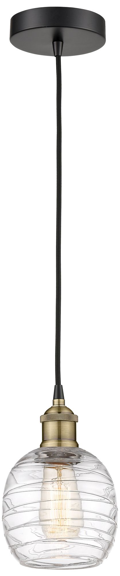 Belfast 6" Wide Black Brass Corded Mini Pendant w/ Deco Swirl Shade