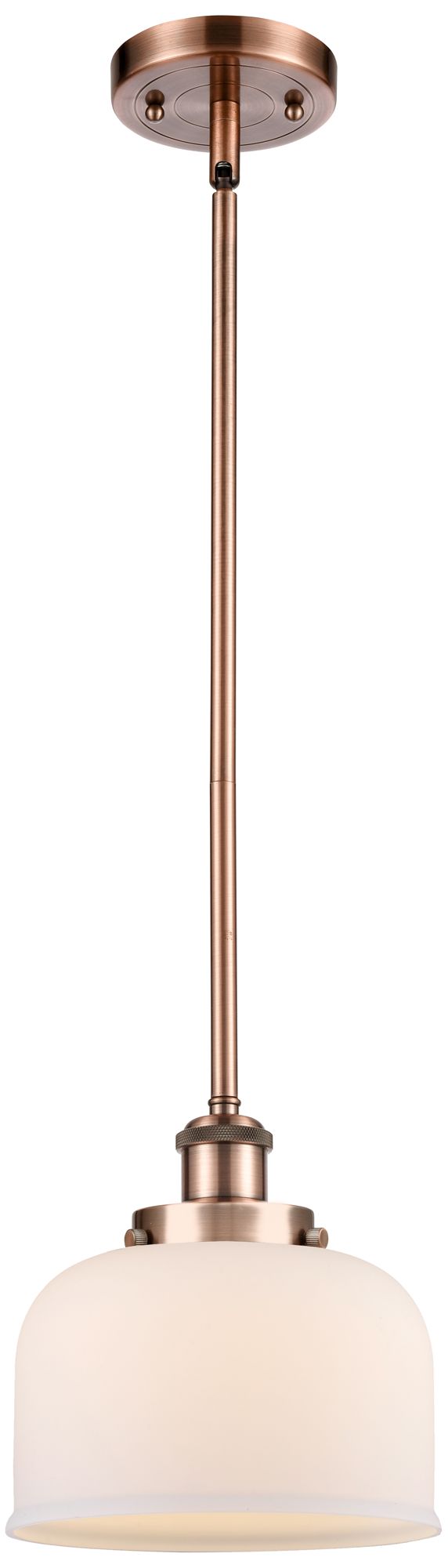 Ballston Urban Bell 8" Antique Copper Stemmed Mini Pendant w/ White Sh