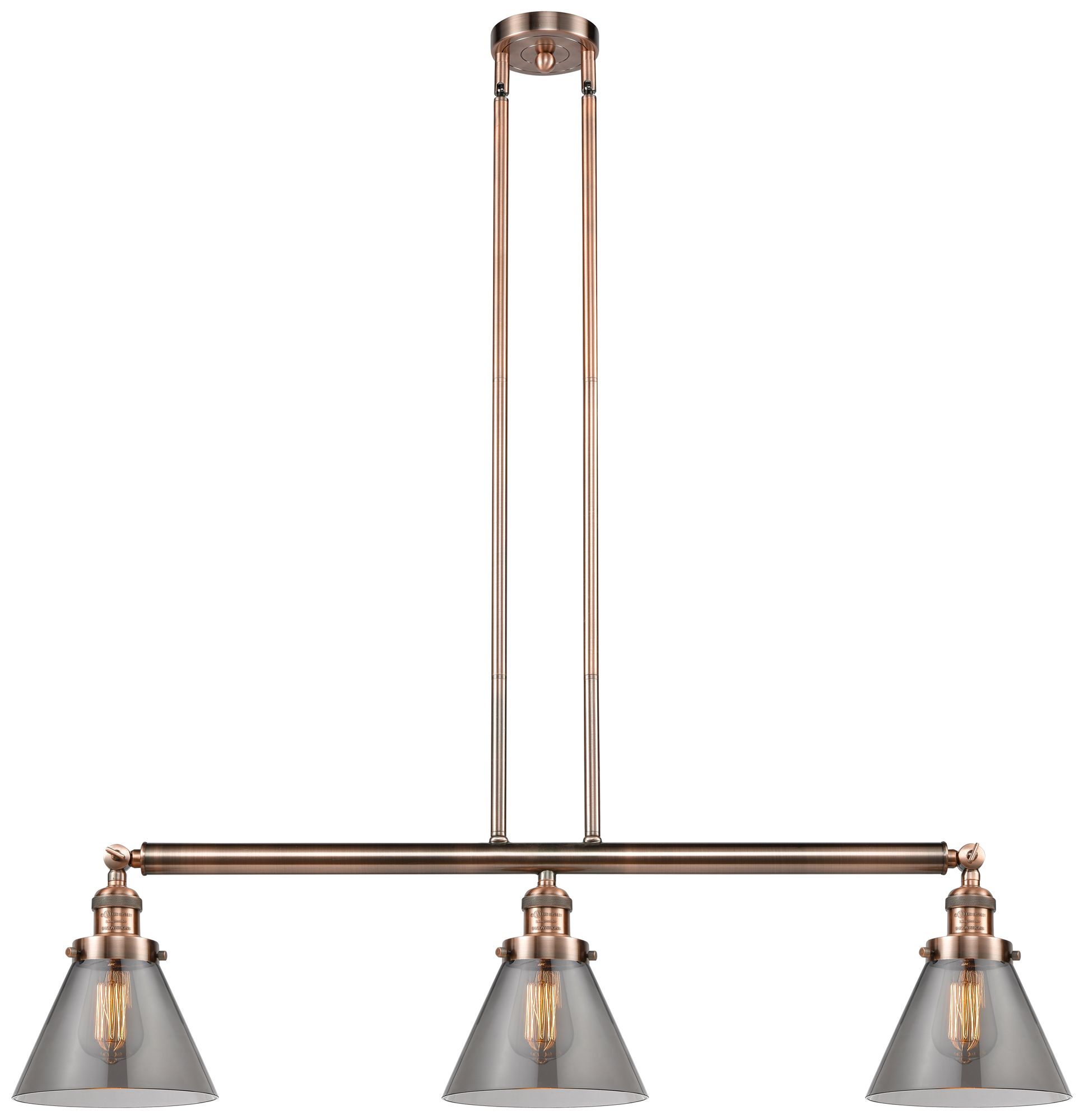 Cone 40.25"W 3 Light Copper Stem Hung Island Light w/ Plated Smoke Sha