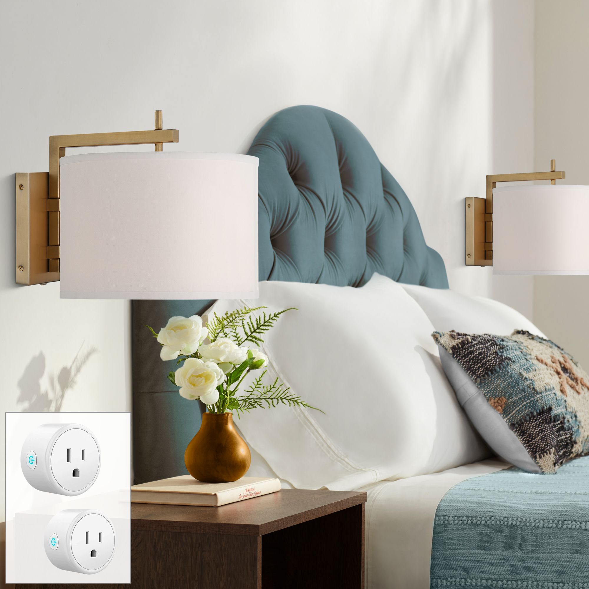 360 Lighting Adair 12" Brass Plug-In Wall Lamps Set with Smart Sockets