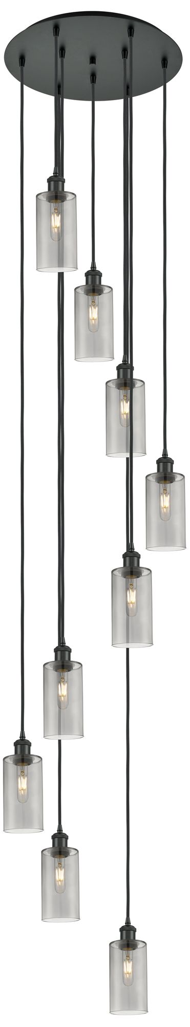 Crown Point 9 Light 19" Cord Hung Multi Pendant Black w/ Light Smoke Shade