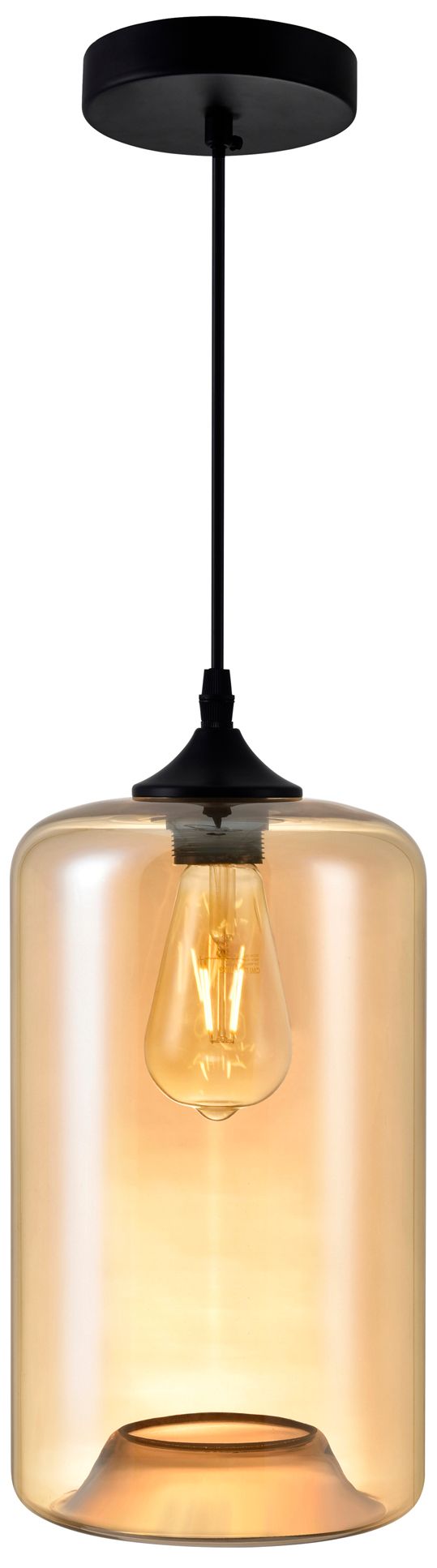 Beverly 7" Wide Black Mini Pendant with Cognac Glass