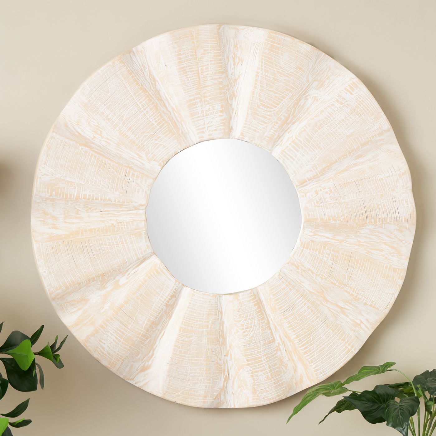 Cream Teak Wood Traditional Wall Mirror, 35" x 3" x 35"