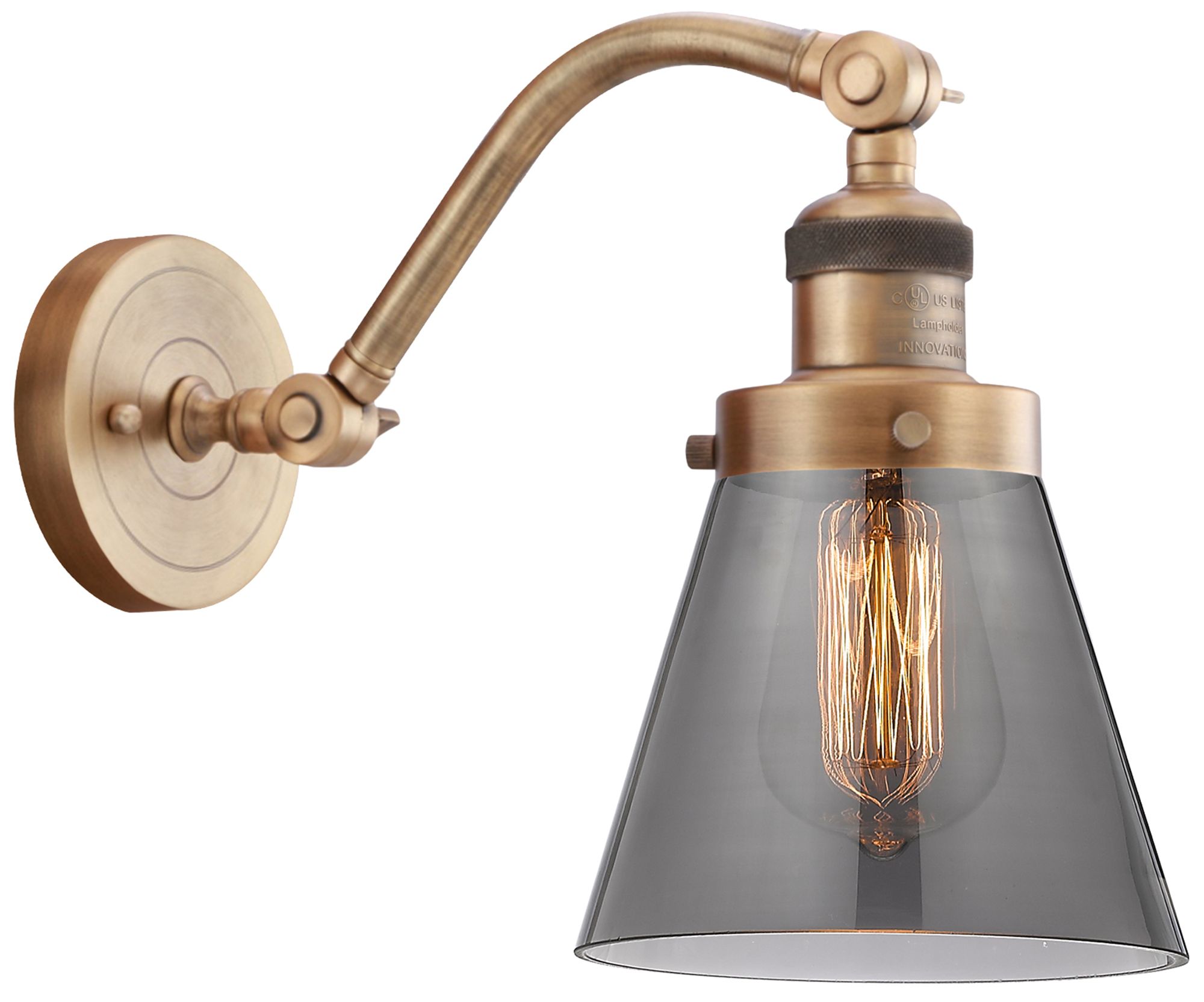 Cone 7" Brushed Brass Sconce w/ Plated Smoke Shade