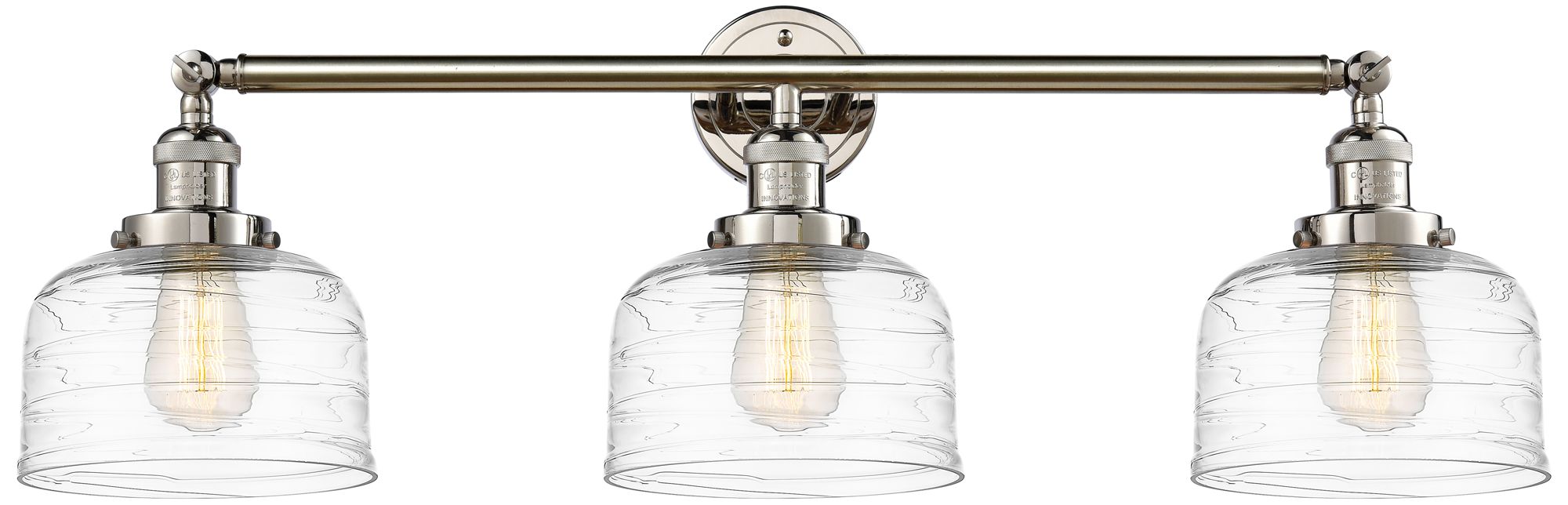 Bell 3 Light 32" LED Bath Light - Polished Nickel - Clear Deco Swirl S