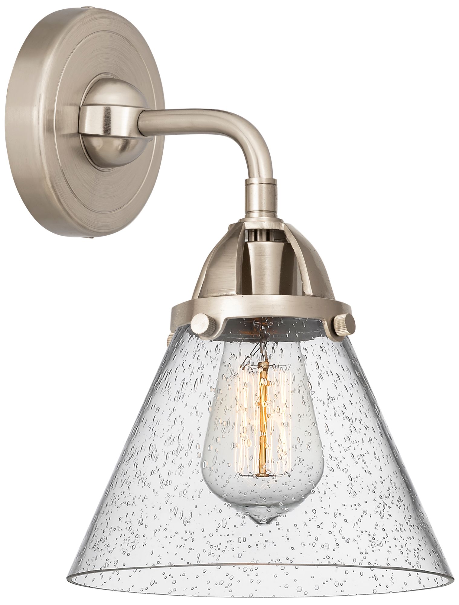 Nouveau 2 Cone 8" Incandescent Sconce - Nickel Finish - Seedy Shade
