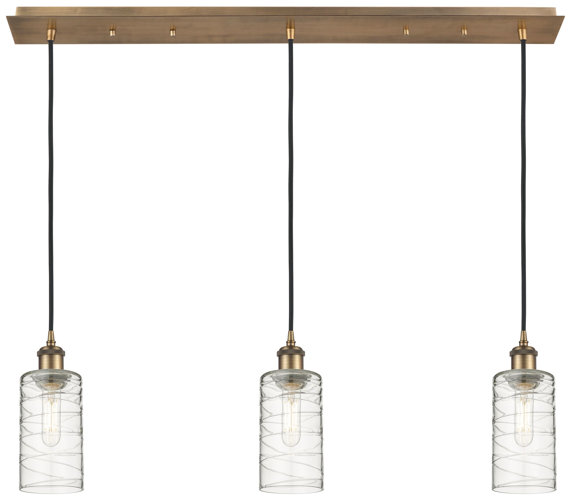 Crown Point 3 Light 37" Cord Hung Linear Pendant Brass w/ Deco Swirl Shade