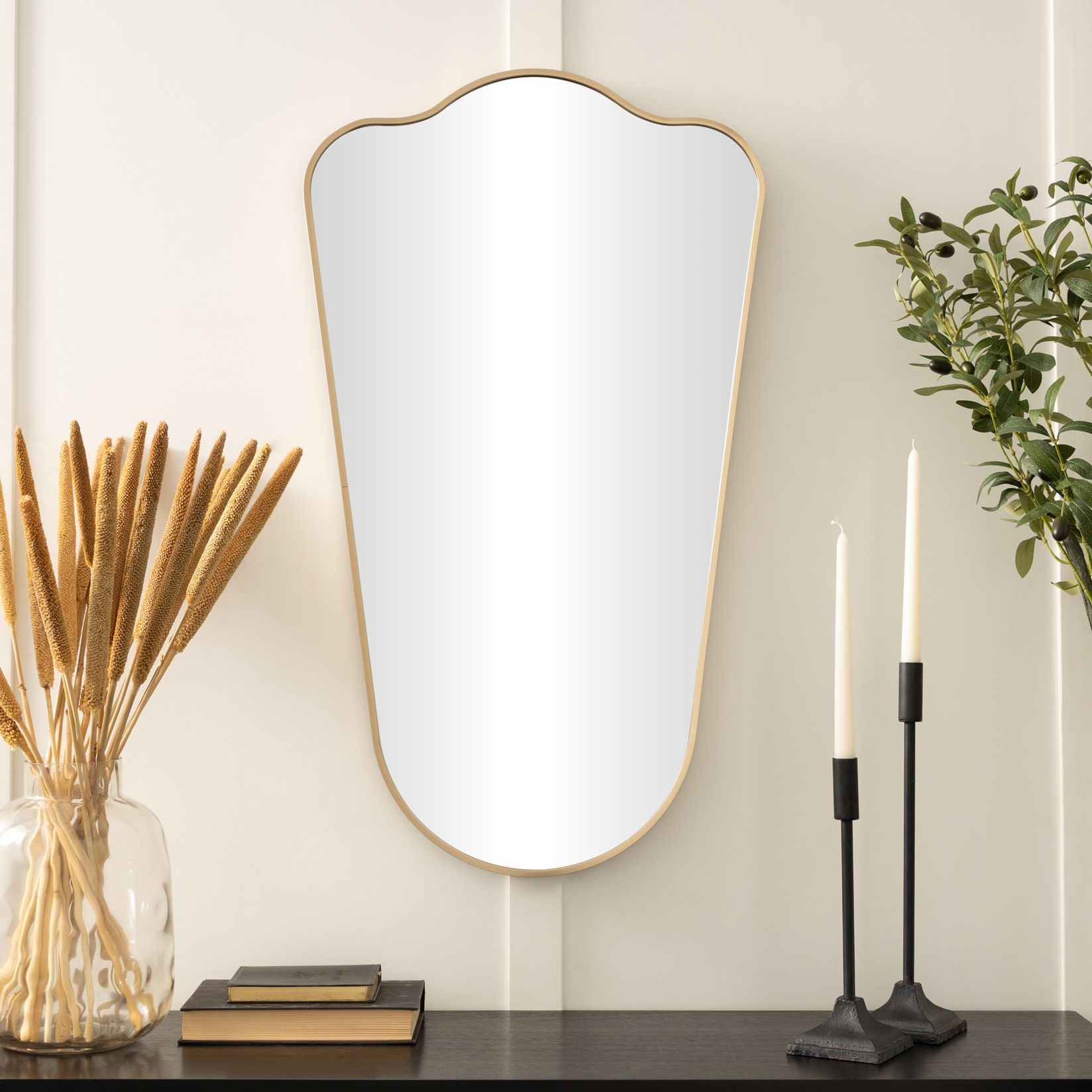 Gold Aluminum Metal Transitional Wall Mirror, 20" x 1" x 35"