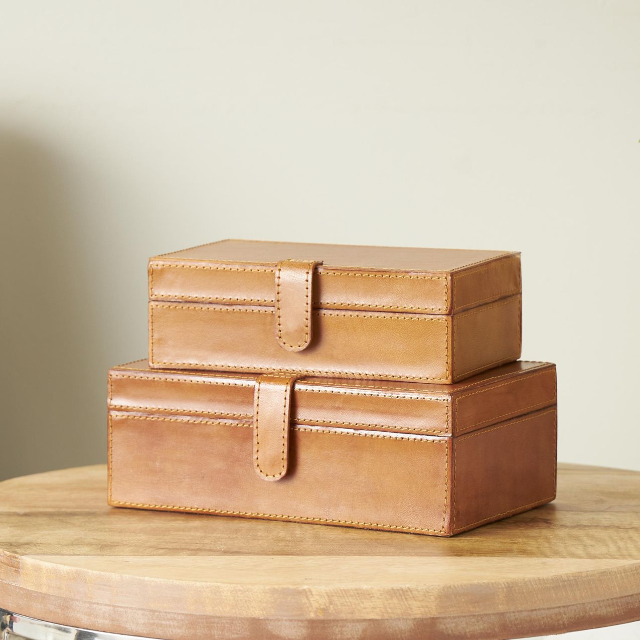 Brown Leather Modern Box, S/2 10", 8"W
