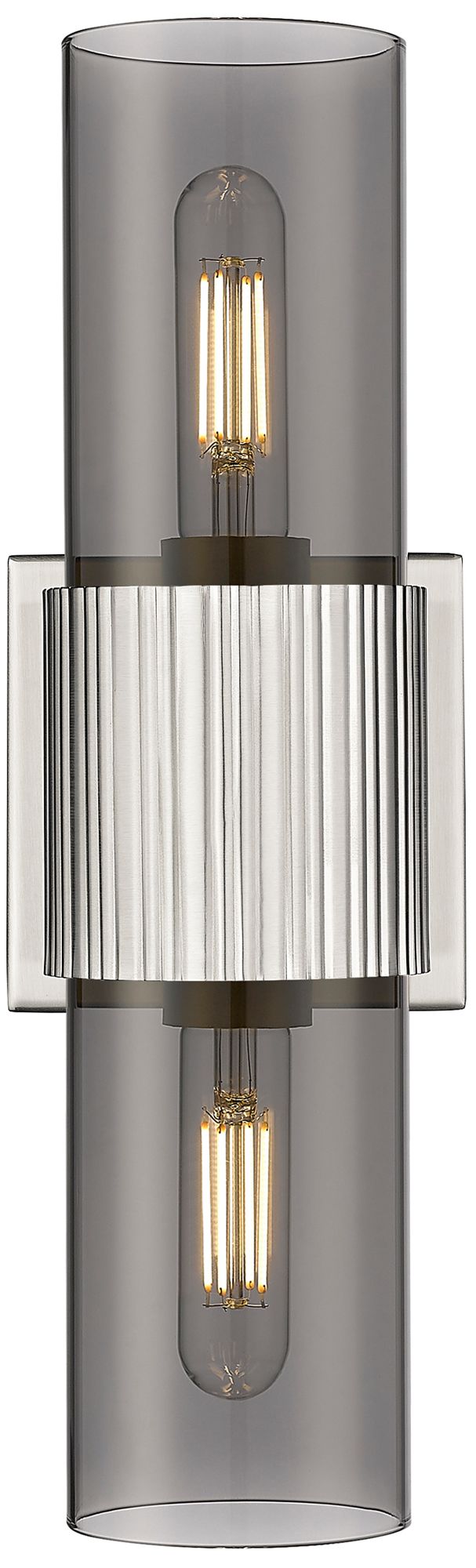 Bolivar 4" Wide 2 Light Satin Nickel Bath Light With Plated Smoke Shad