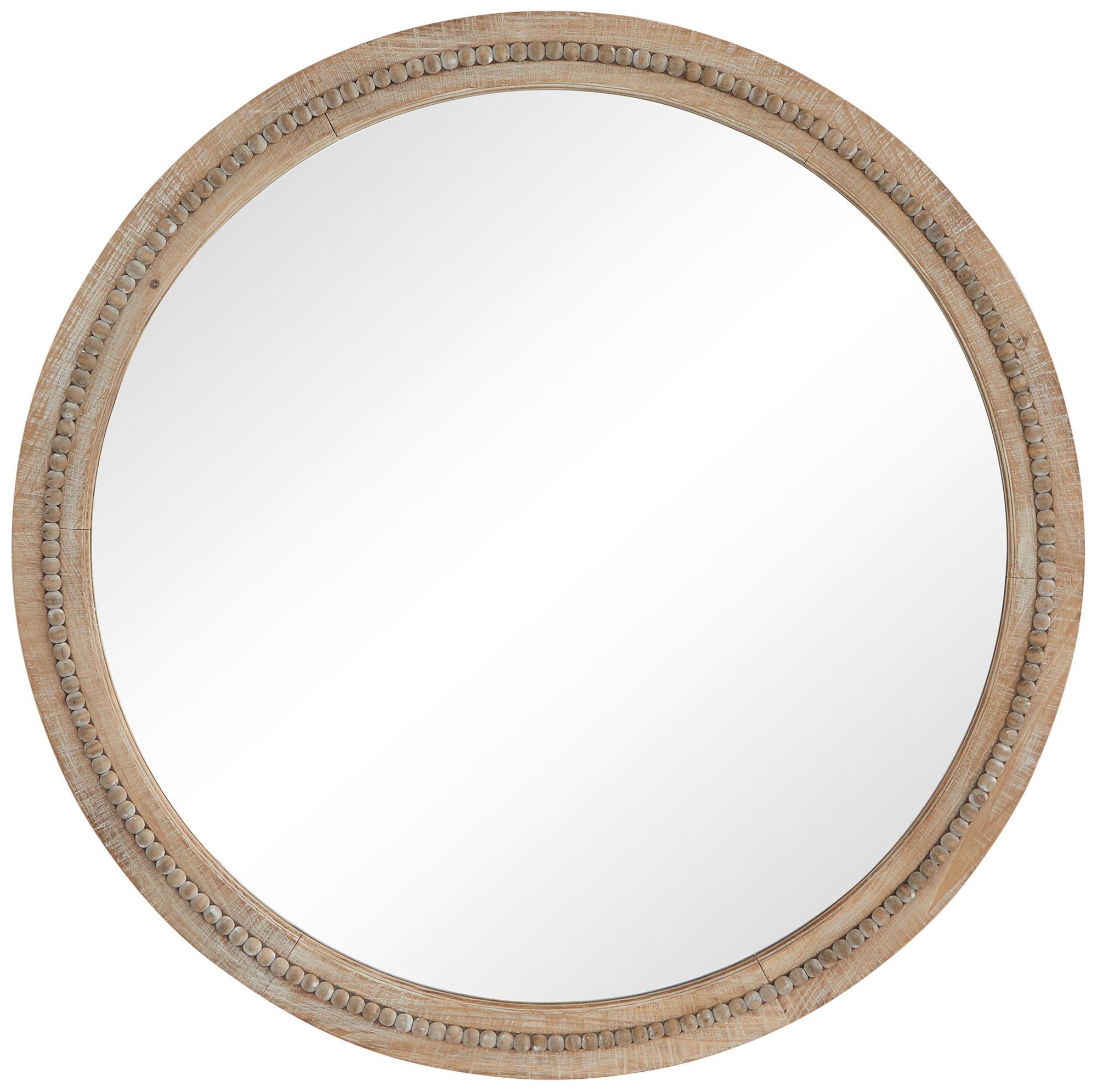 Daga Matte Brown Wood with Beaded 44" Round Wall Mirror