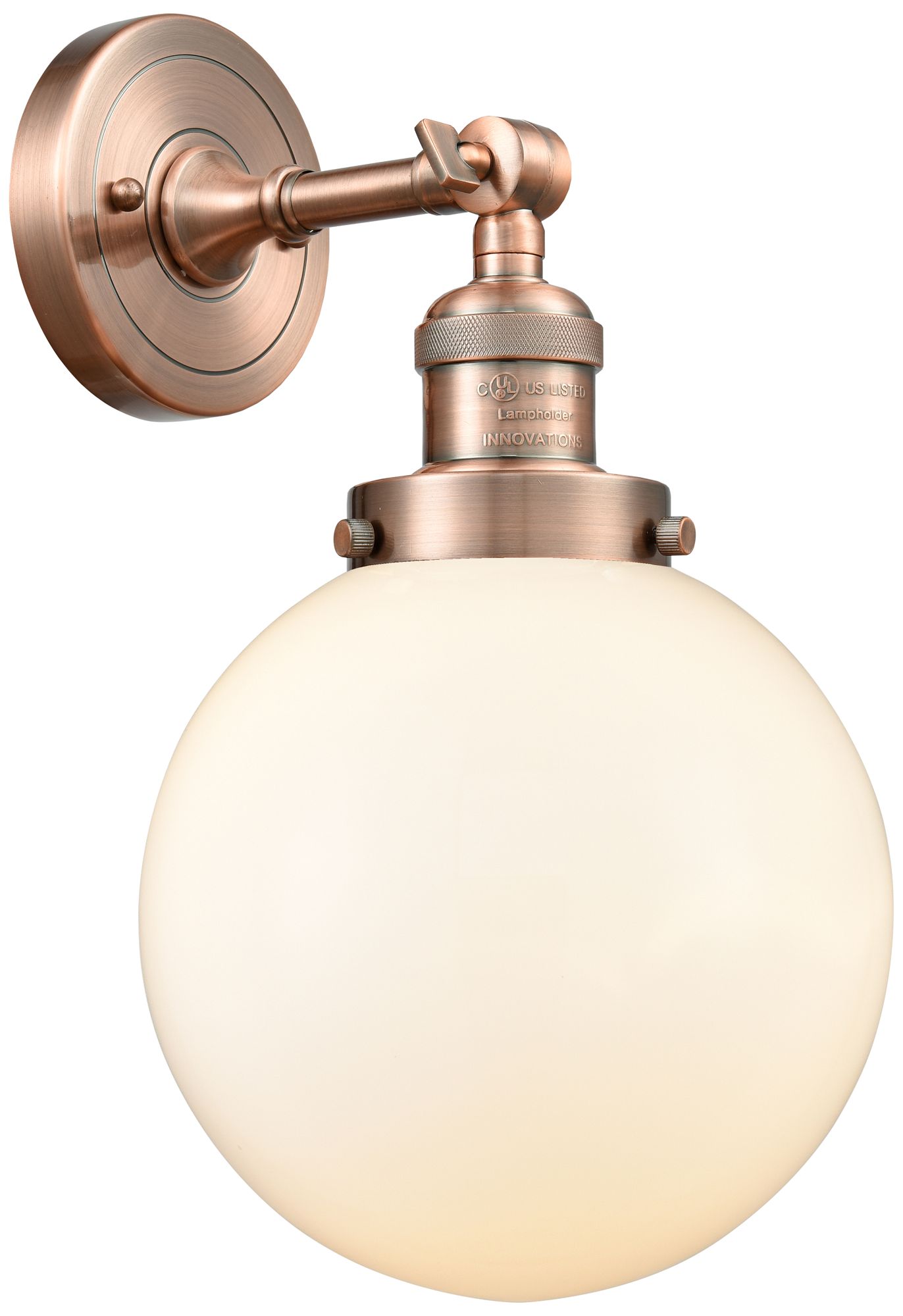 Franklin Restoration Large Beacon 8" Antique Copper Sconce w/ White Sh