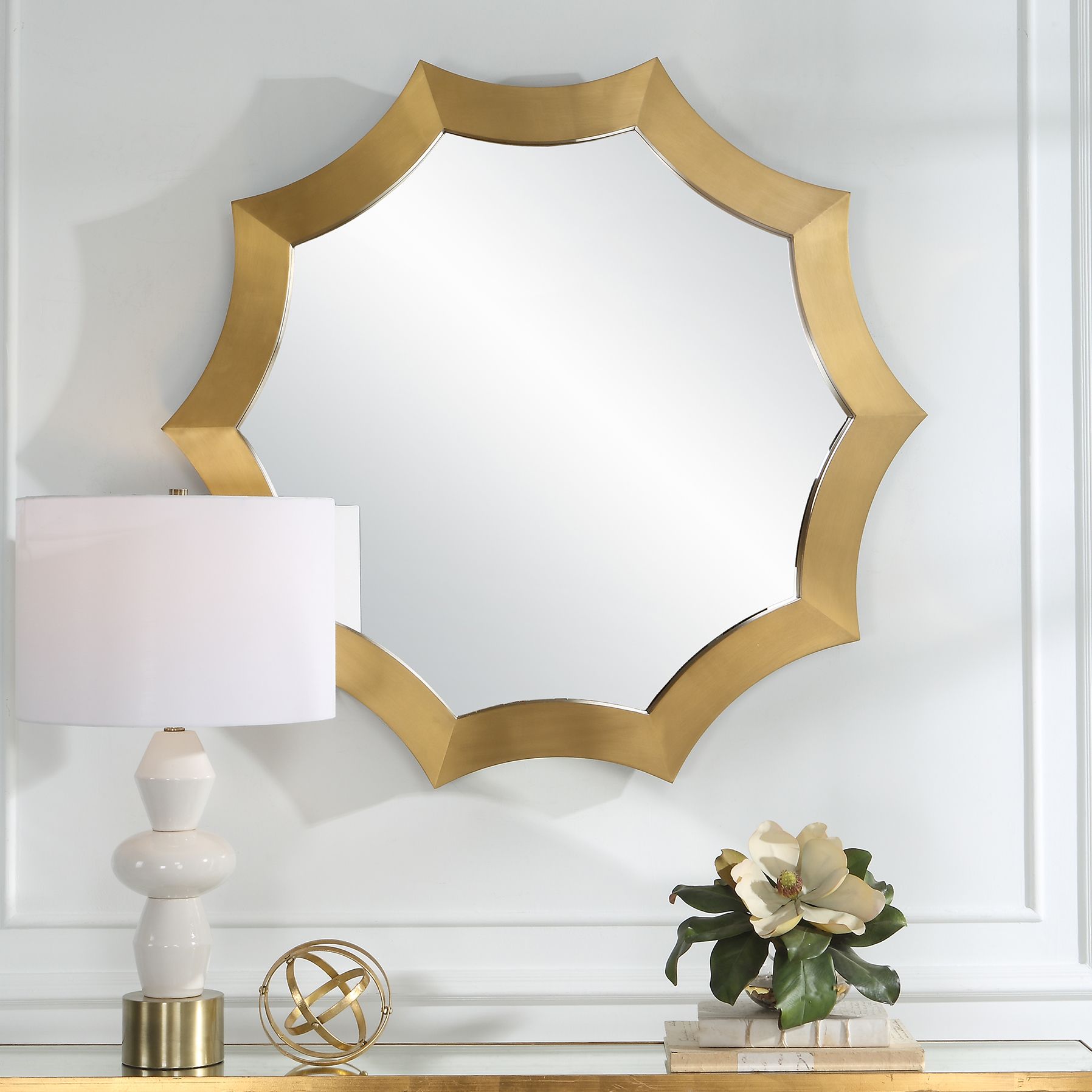 Flare Plated Brushed Brass 40" x 42" Scalloped Wall Mirror