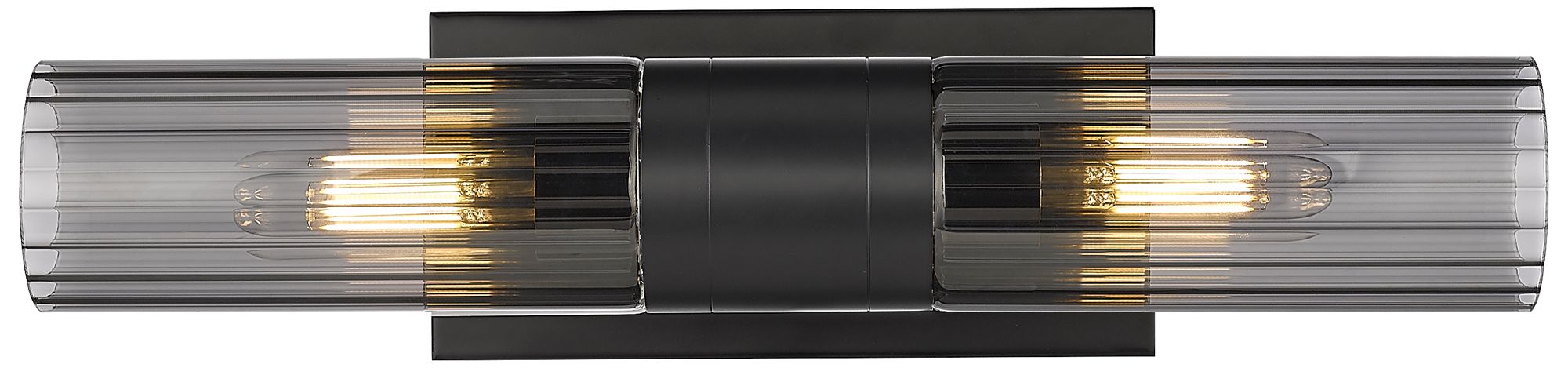 Empire 18.5" Wide 2 Light Matte Black Bath Light With Smoke Shade
