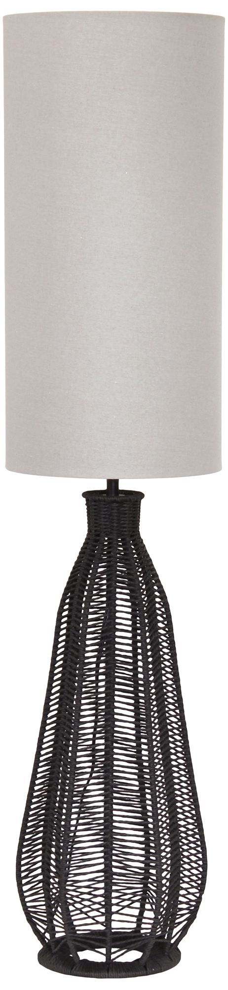 46.75" Vintage Rattan Rope Floor Lamp with Light Gray Fabric Shade, Bl