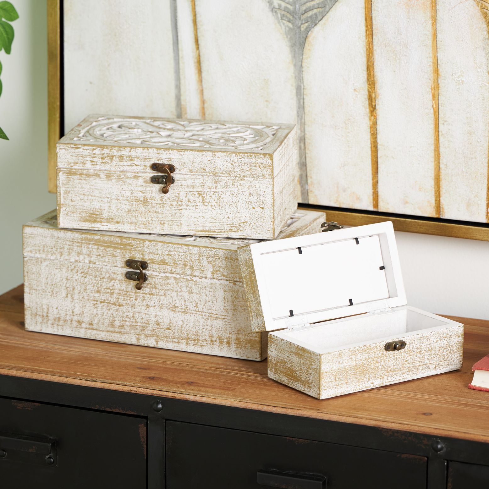 White Mango Wood Coastal Box, S/3 8", 10", 12"W