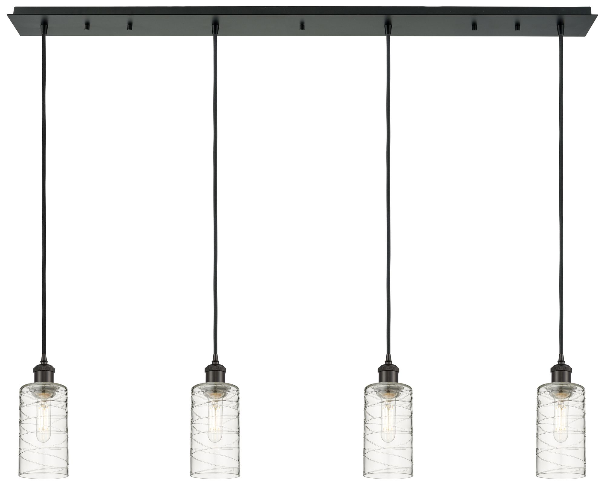 Crown Point 4 Light 49" Cord Hung Linear Pendant Black w/ Deco Swirl Shade