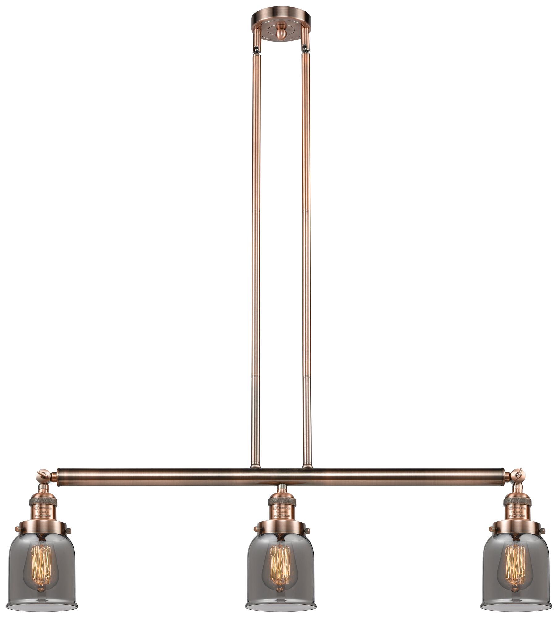 Bell 37.5" Wide 3 Light Copper Stem Hung Island Light w/ Plated Smoke