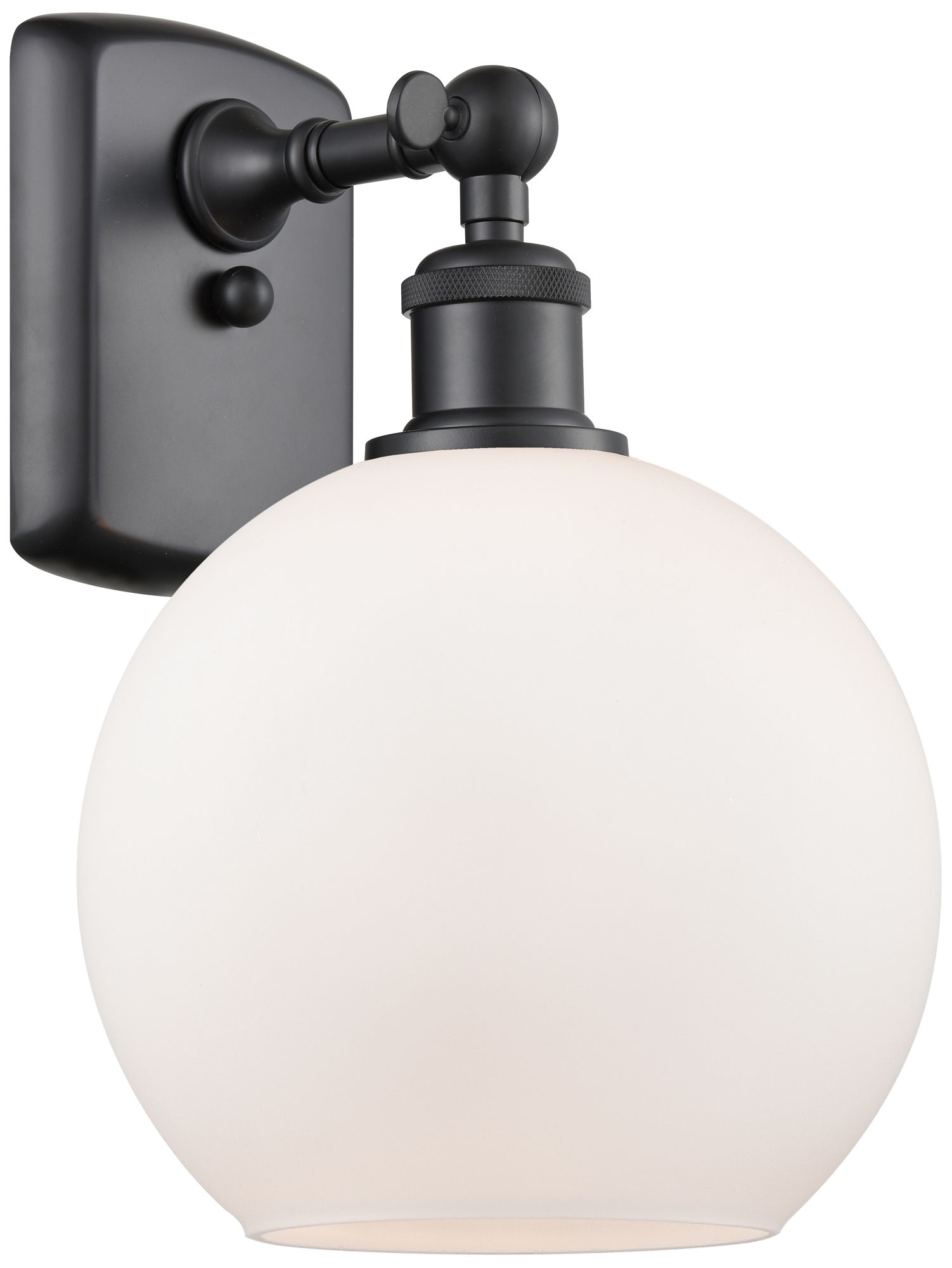 Ballston Athens 8" Incandescent Sconce- Matte Black Finish - White Sha