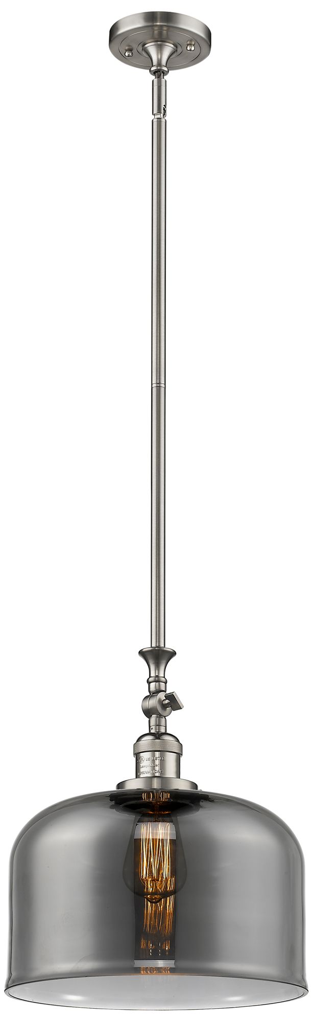 Bell 12" Brushed Satin Nickel Stem Hung Mini Pendant w/ Plated Smoke S