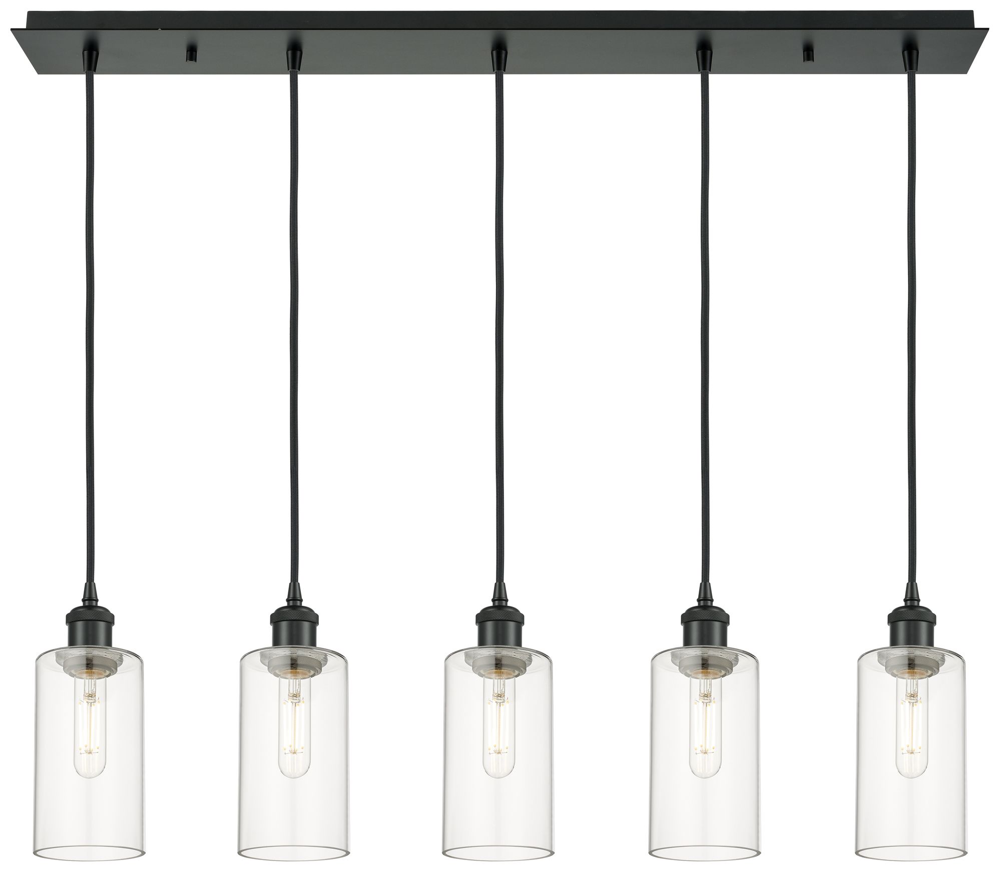 Crown Point 5 Light 37" Cord Hung Linear Pendant Matte Black Clear Shade